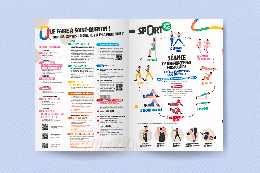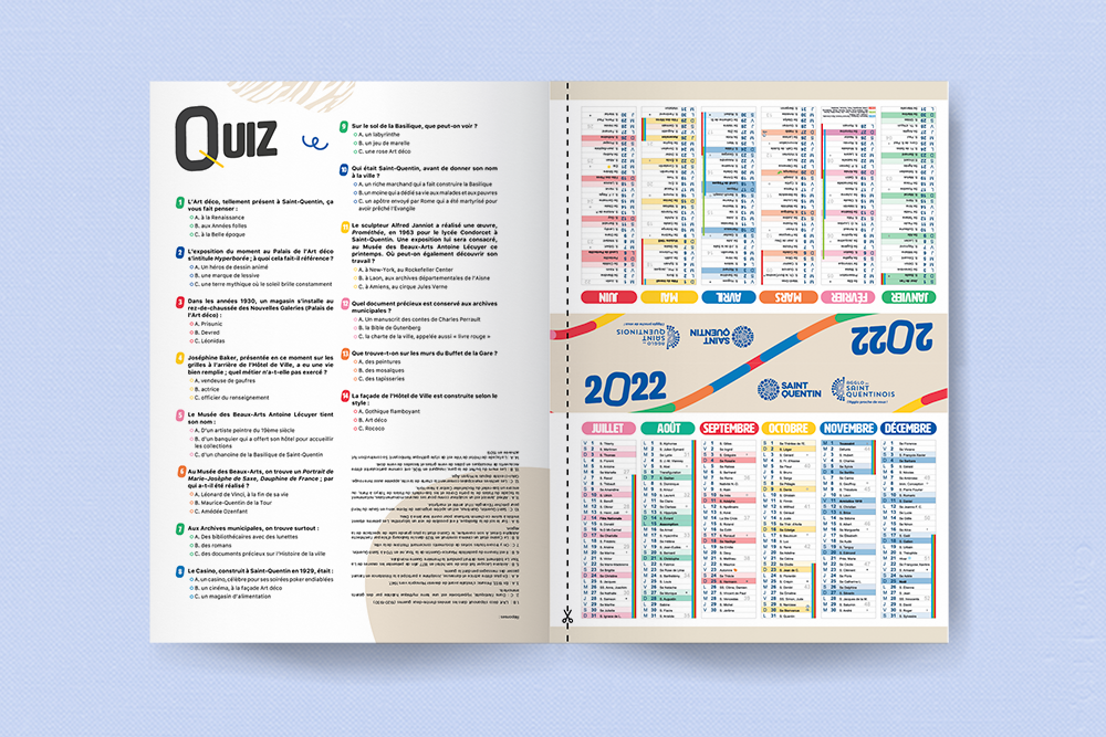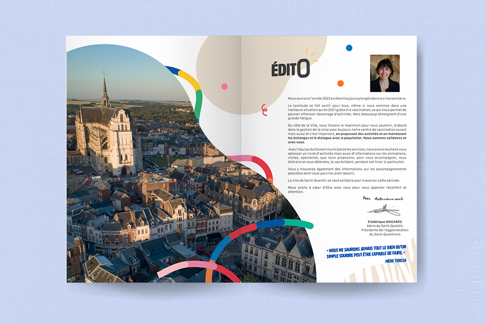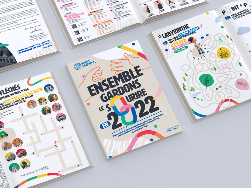 Pendant la pandémie mondiale, la ville de Saint-Quentin a réalisé un document pour ses habitants. « Et si, malgré le contexte si particulier dans lequel nous étions plongé, nous retrouvions le sourire ? » Cette idée conductrice a fait naitre cette outil de divertissement et de réconfort.  Clin d’œil manifeste de la couverture de la Saison Culturelle de cette même année, les deux mains sont prête à se toucher, malgré les distanciations. Empreinte aux couleurs vives, les deux cercles de la couverture s’unissent pour l’année qui vas suivre et montre l’intention de la municipalité de réaffirmer la cohésion et l’accompagnement aux habitants durant le confinement.